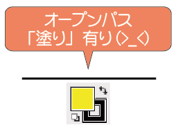 ※面がないオープンパスの塗りに黄色をつけたオブジェクト。良くない例でございます(^~;)