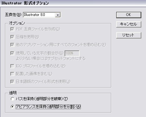 でも、Illustrator8には透明がないのに、透明機能がそのままいくのは不思議ですよね?