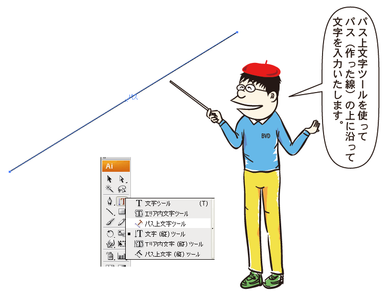 パスの上に文字を、打てると、これにかぎらないで、もっと色々な