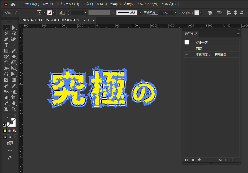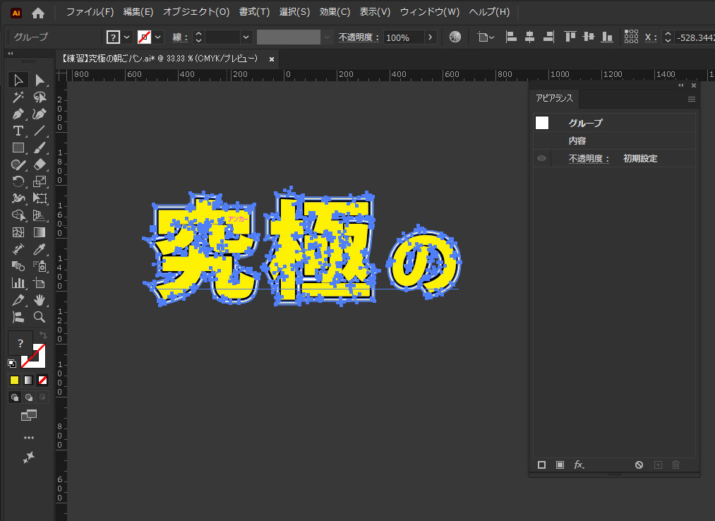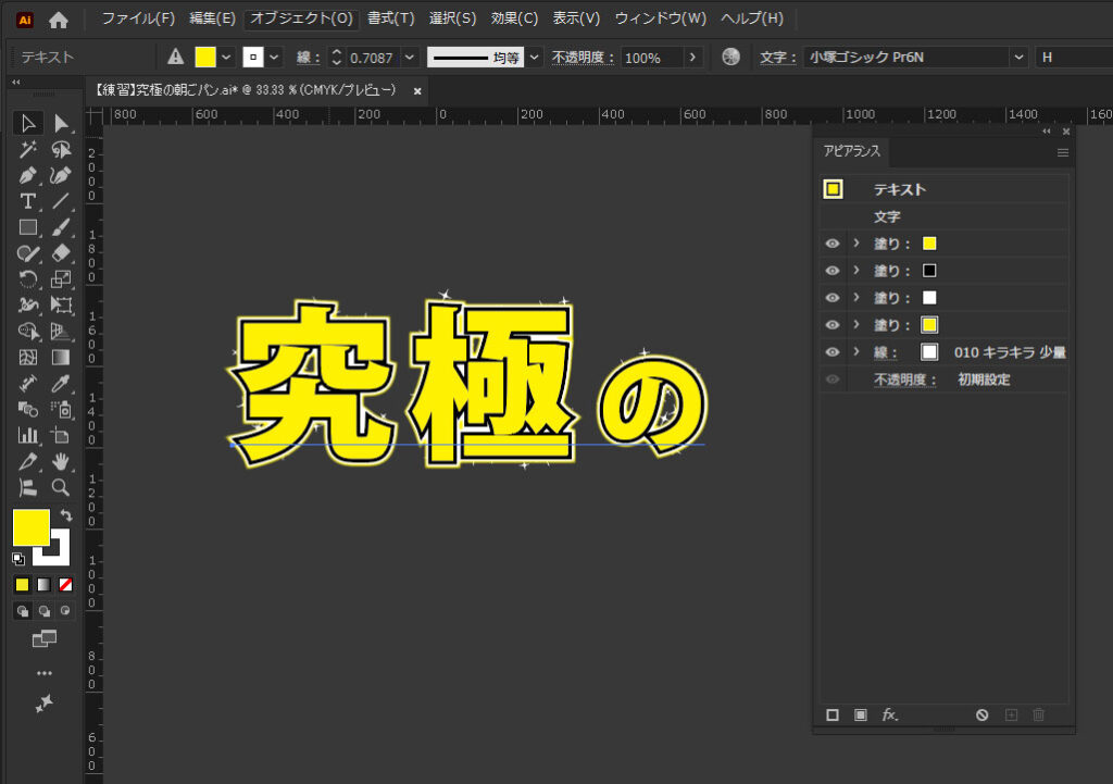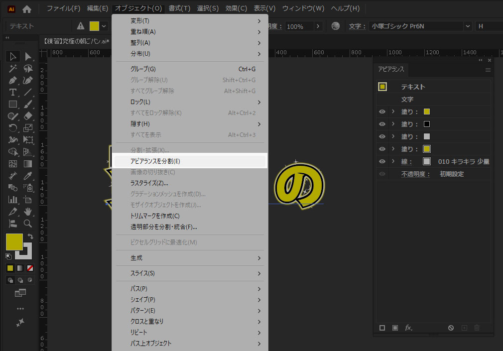 印刷入稿用データに仕上げるには、アピアランスの分割と文字のアウトライン化の2つの処理が必要です。
